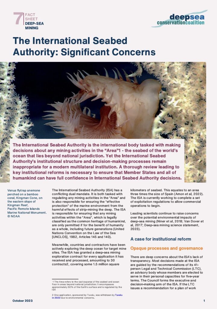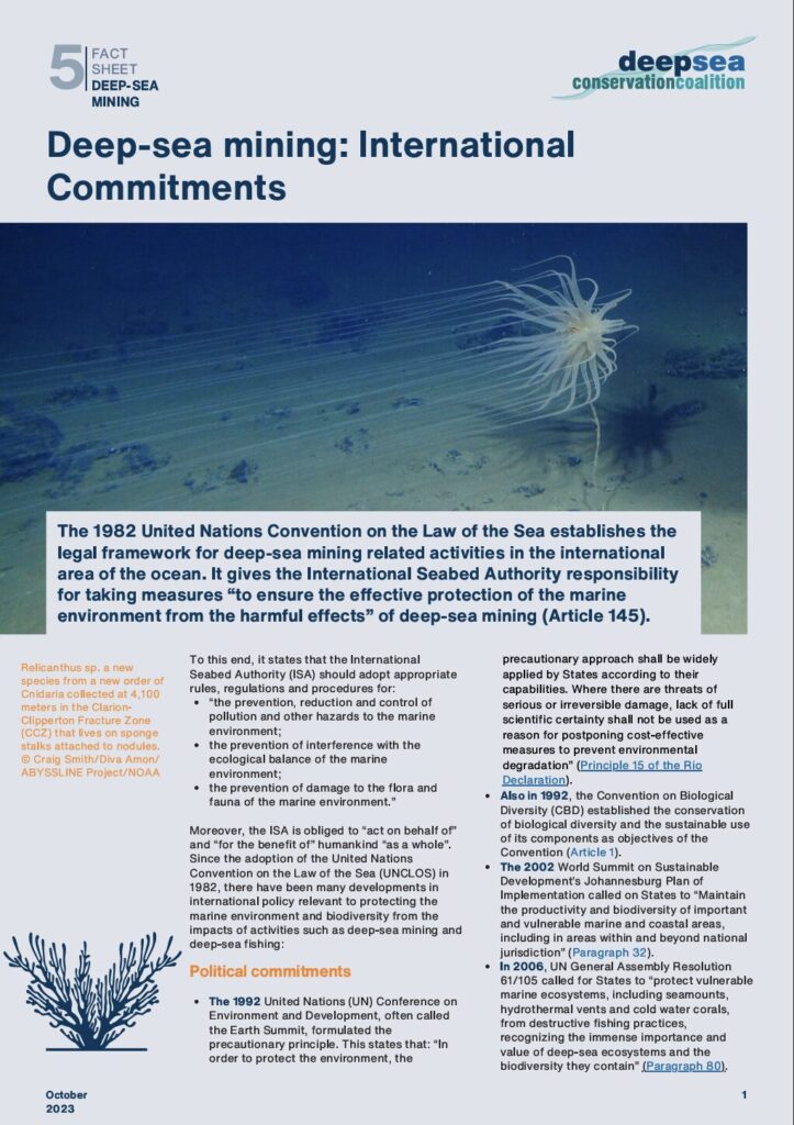 Deep Sea Conservation Coalition Fact Sheets